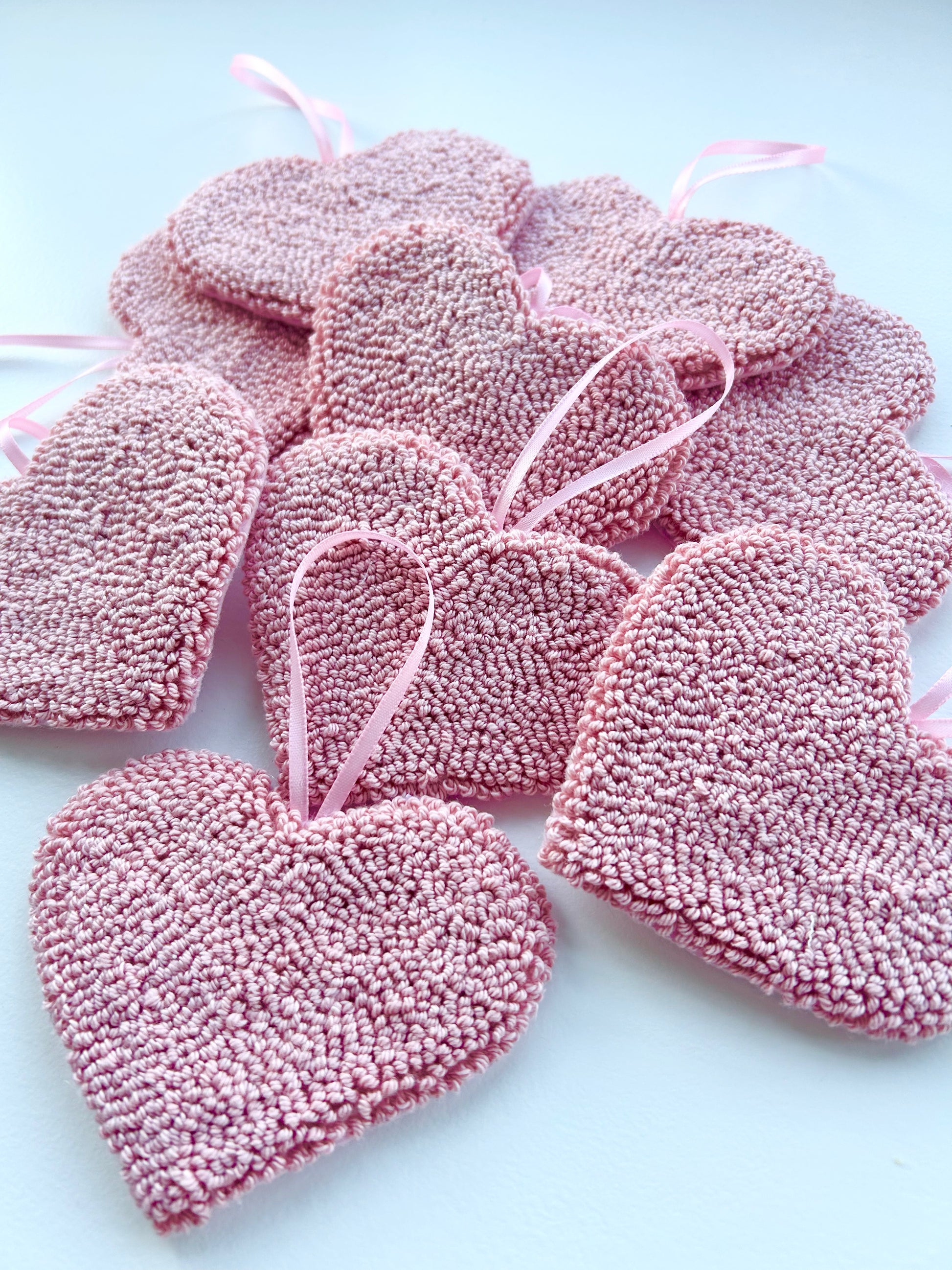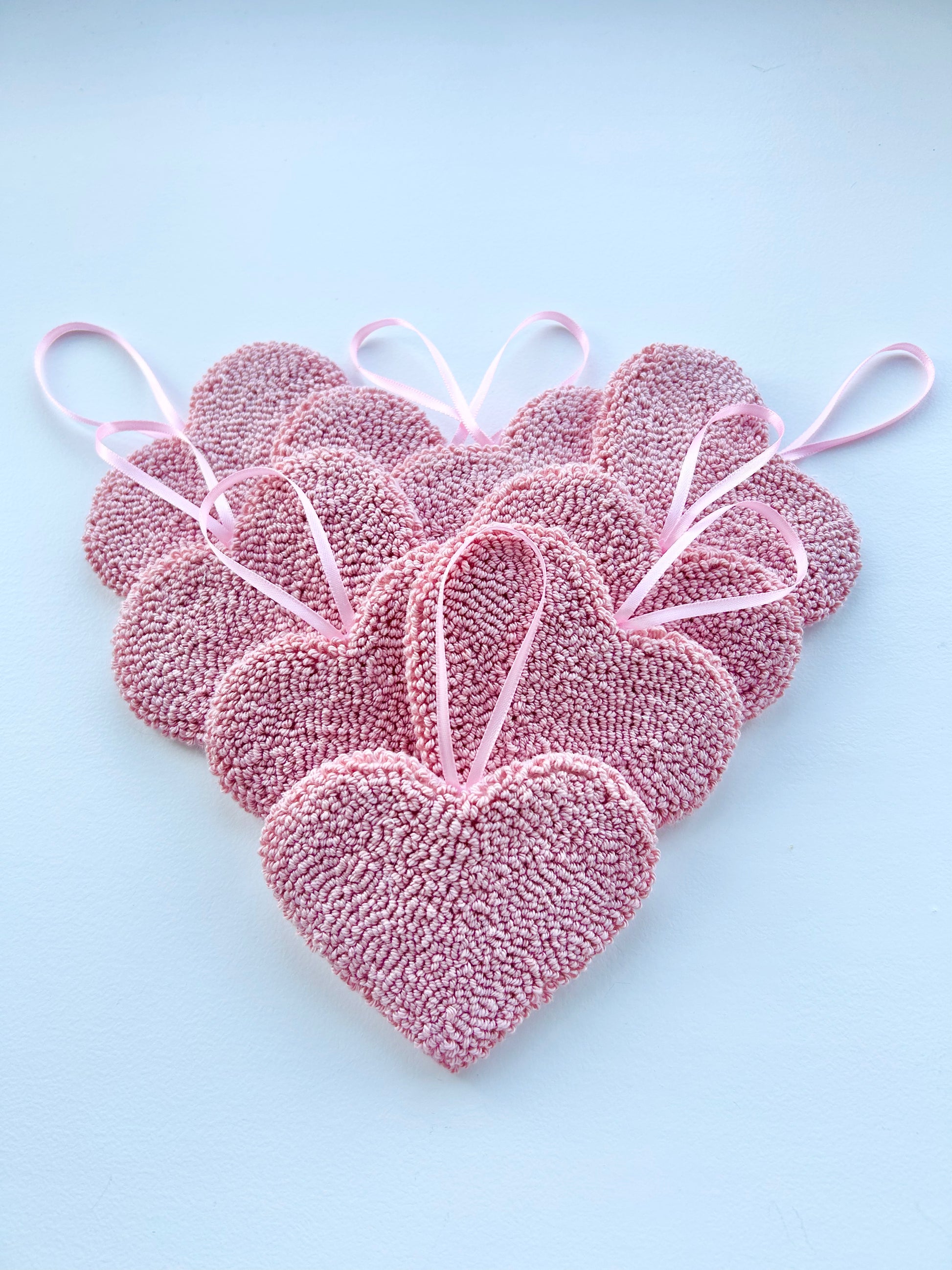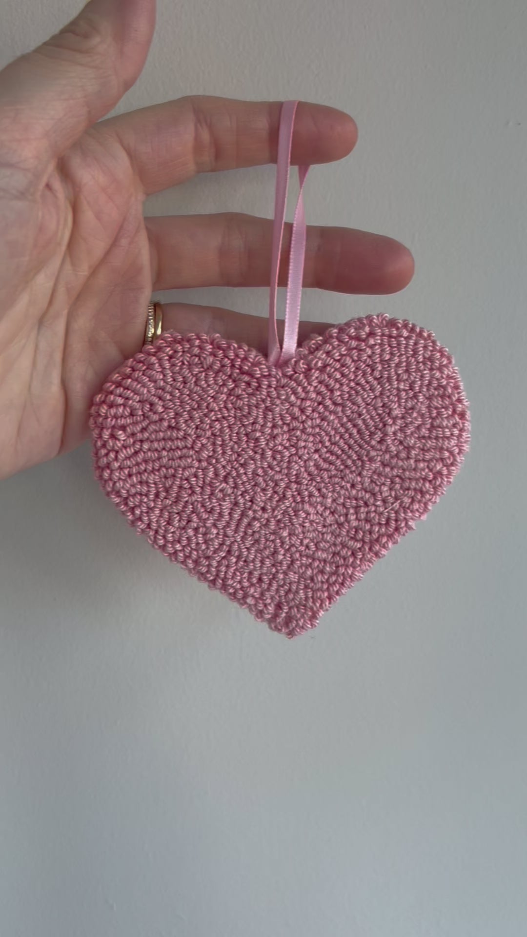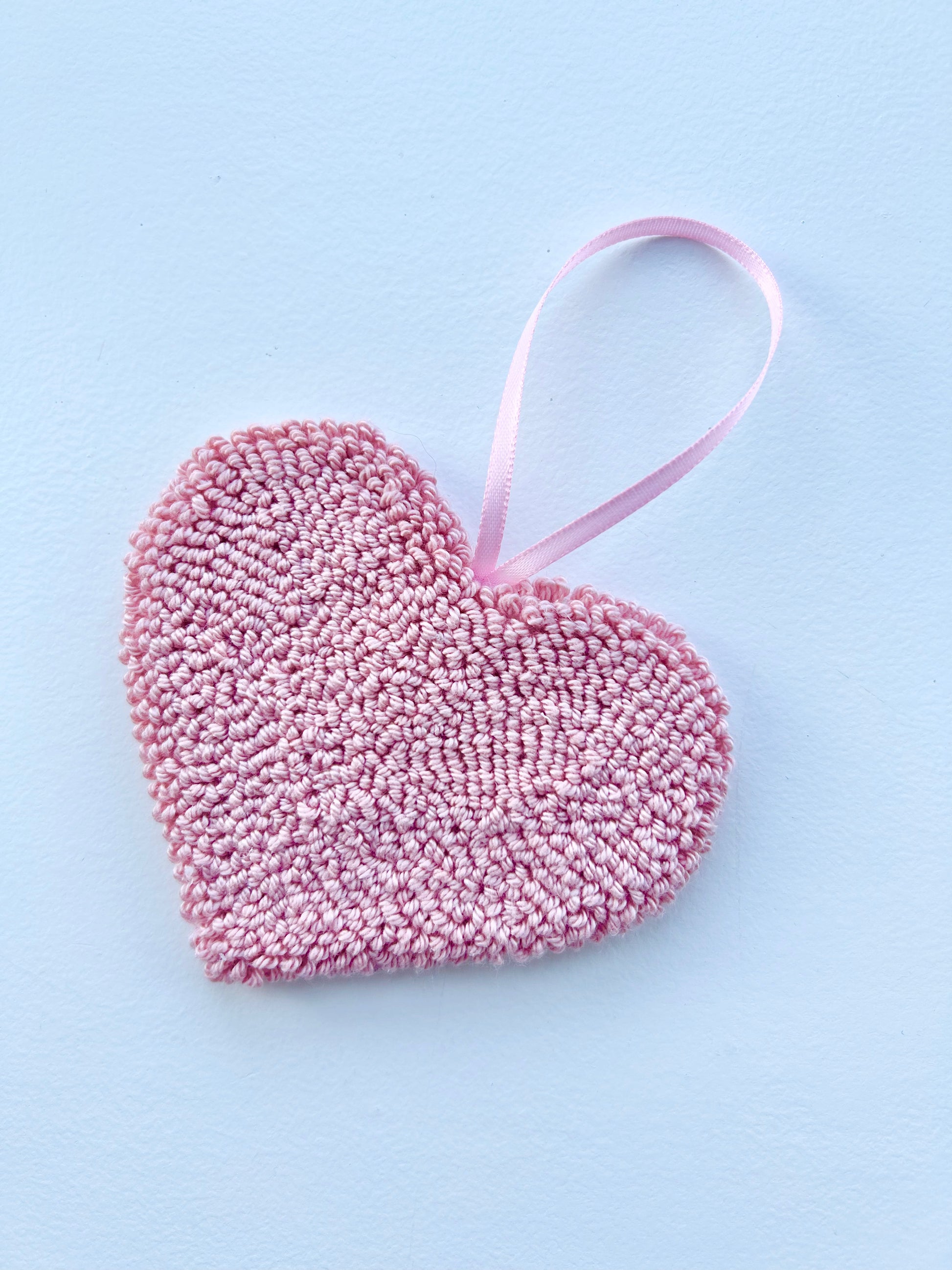 My love heart hanging decoration is punched using cotton yarn in the colour of your choice (see colour chart in picture in for available options) and measures approx 7cm tall by 10cm at its widest point. Please include a note at checkout with your choice of yarn colour.