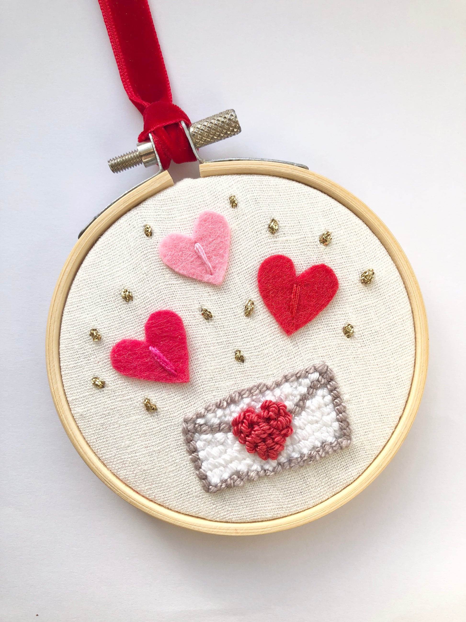 Each little love note is hand punched by me and therefore unique. They come complete with a colour coordinated velvet ribbon for hanging and are backed with felt to protect the yarn.