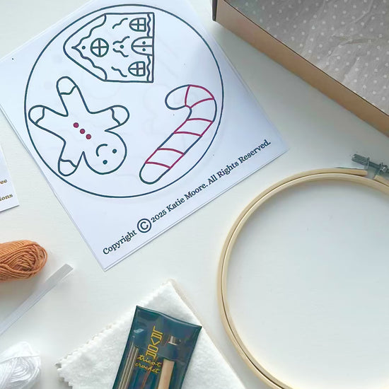 Create your own charming hanging Christmas tree decorations with my beginner-friendly punch needle embroidery craft kit. With this kit, you will be able to practice the technique before creating your own little hanging gingerbread house, gingerbread man and candy cane.